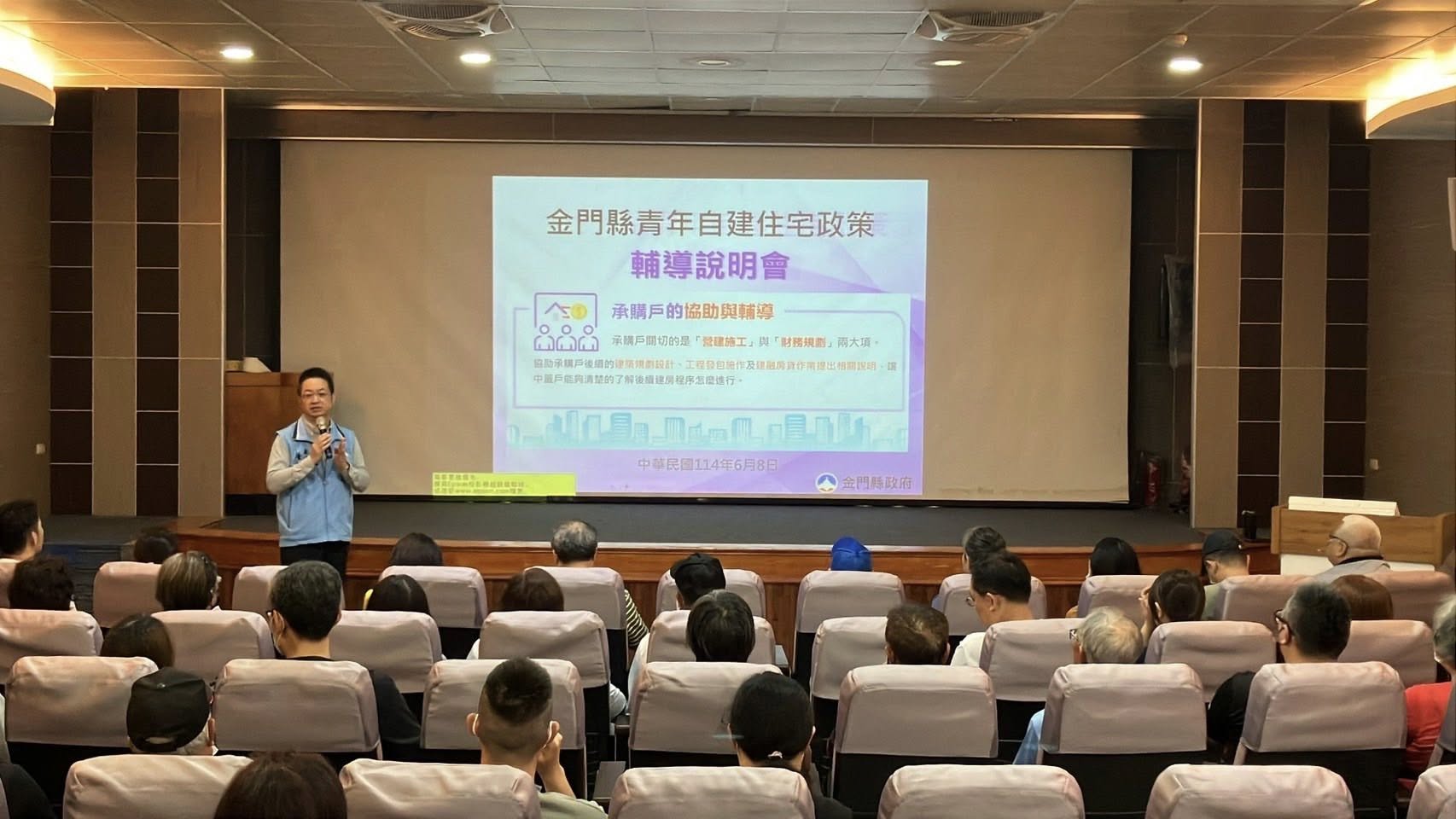 為協助青年深入了解自建住宅的流程與可運用資源,縣府城鄉處於今(8)日上午在本府多媒體簡報室辦理「青年自建住宅輔導說明會」,特別邀請福建金門馬祖地區建築師公會、臺灣區綜合營造業同業公會金門縣辦事處等專業代表蒞臨,提供即時且實用的第一手專業資訊。 本次說明會由縣府城鄉處黃儒新處長親自主持,現場超過百位民眾熱情參與,還有三代同堂一同出席,青年朋友們踴躍發問、討論熱烈,聚焦三大重點議題。(城鄉規劃科)