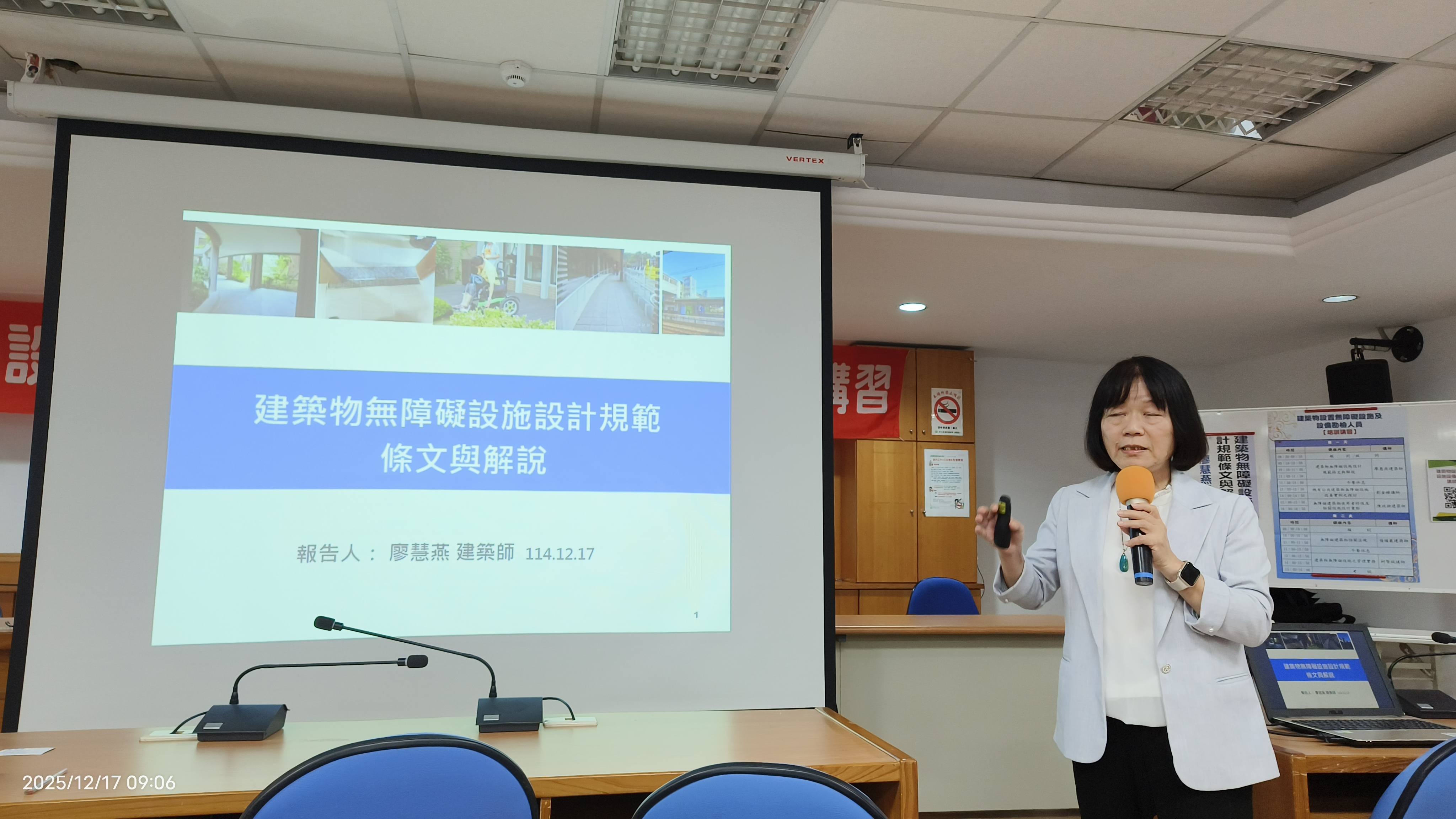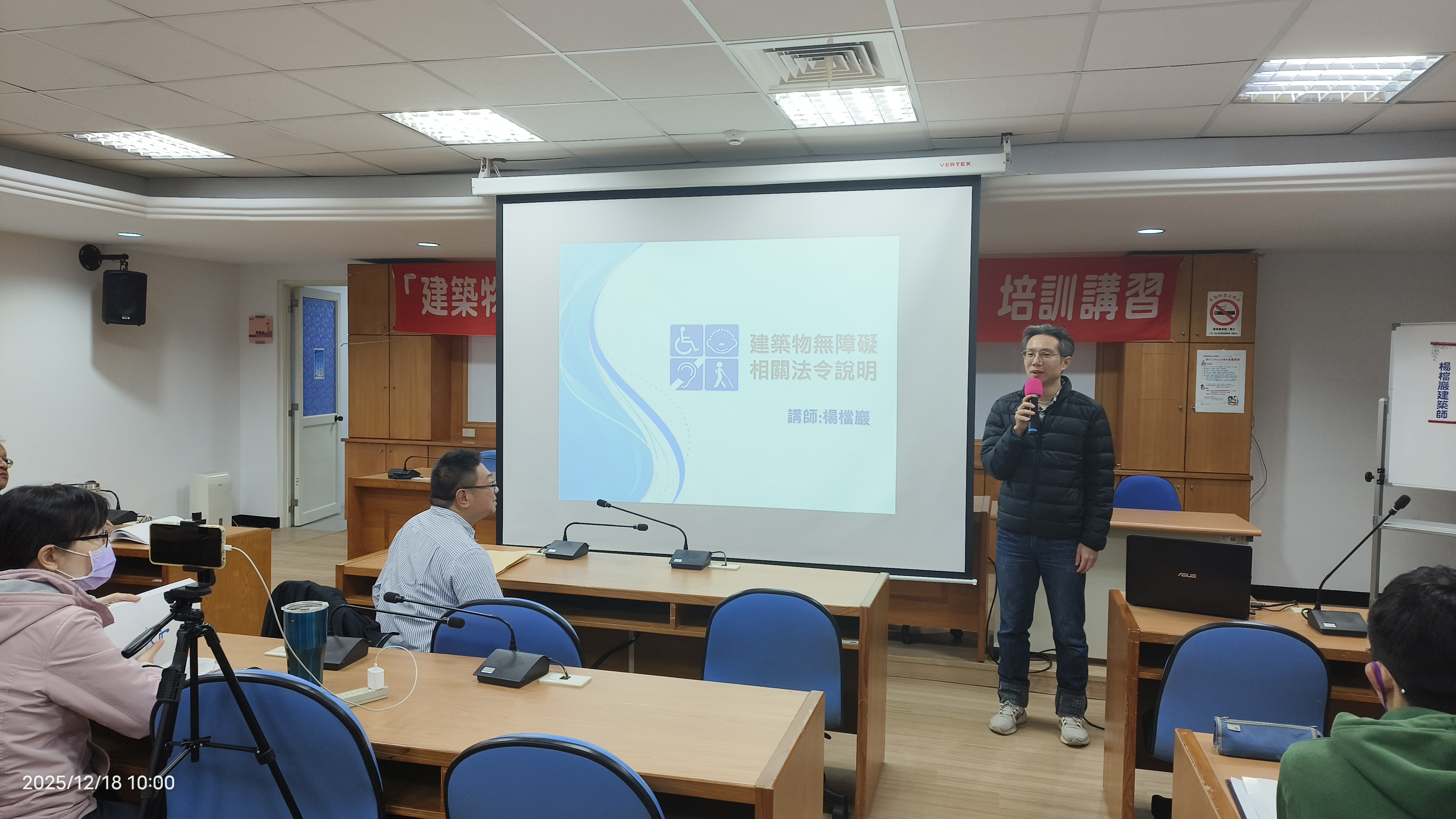 為使縣府、各鄉鎮公所及各級學校相關人員,以及建築從業人員、社福團體、長期照顧(護)機構人員…等能熟悉無障礙環境相關理念,於12月17日及12月18日二日於金湖社福館辦理「建築物設置無障礙設施設備勘檢人員培訓講習」,期許落實於單位之無障礙設施勘檢工作,俾使行動不便者皆能享受安全無虞之無障礙環境。(建築管理科)